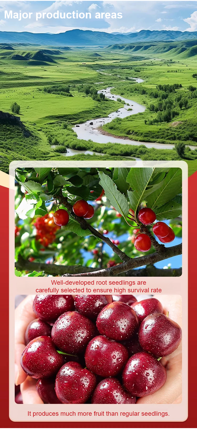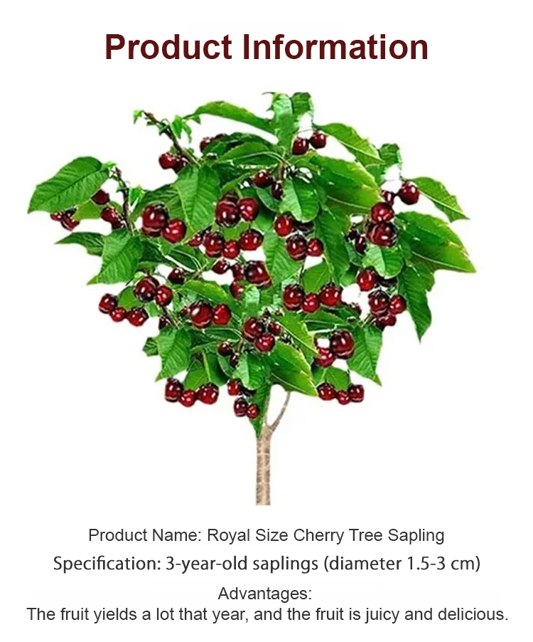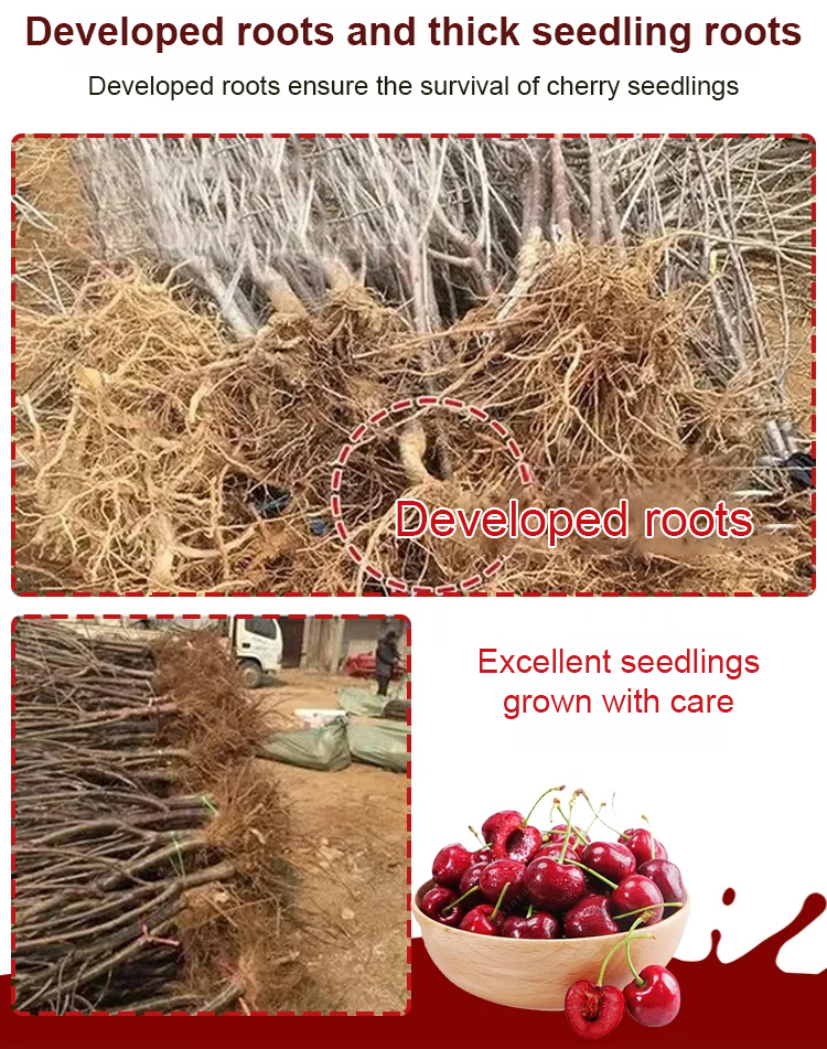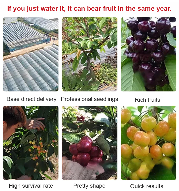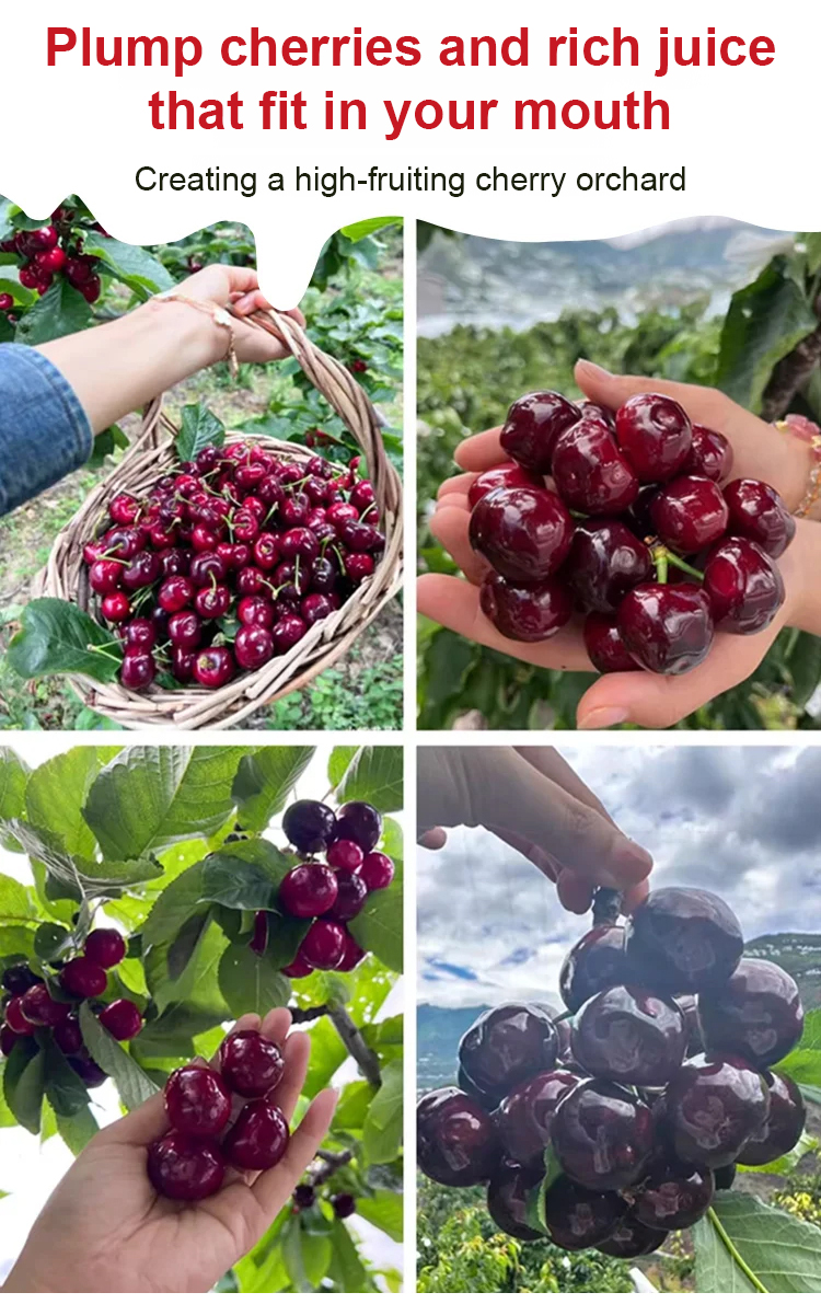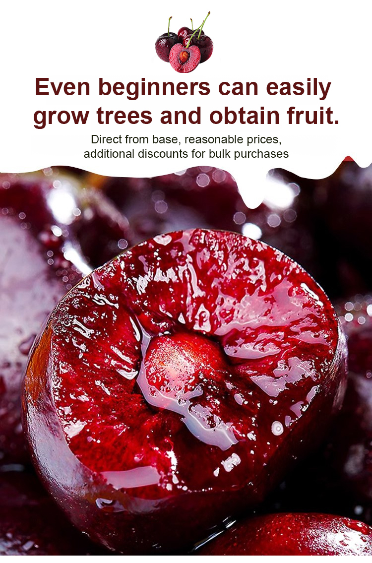 Organic certified cherry saplings with a fruiting rate of up to 99.99%. The fruits are naturally pure, free from pesticide residues and pollution. They are sweet and juicy, with thin skin and thick flesh, and larger than ping pong balls!