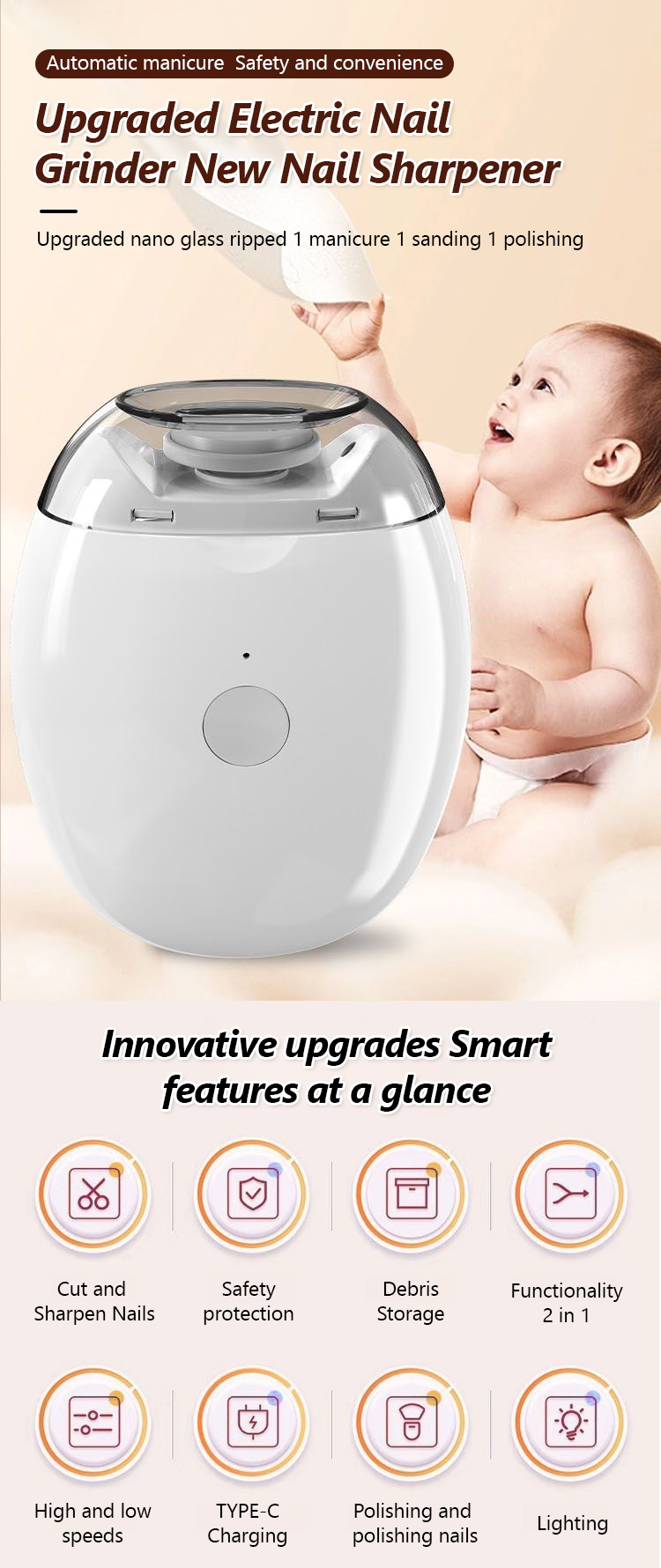 [A must-have for families with babies and elderly people] Electric nail grinder
